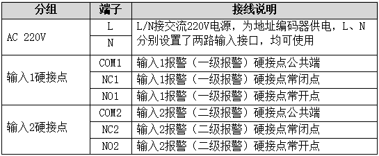地址編碼器使用自擬協議提供RS485通訊接口與綜保儀連接。通過使用屏蔽雙絞線和通訊中繼器,傳輸距離可達1km。