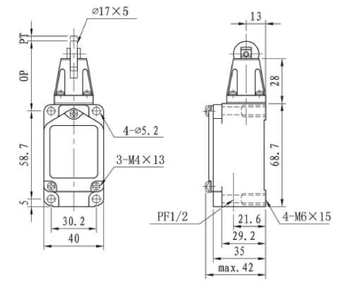 • 結構特點:雙回路型限動開關,內藏接點座有雙簧片設計,機械壽命長