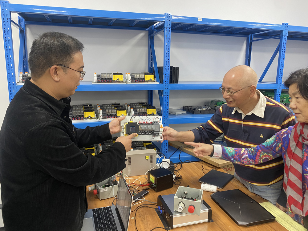 座談結束,總經理鄭斌帶領黎怡杭博士、蕭林專家參觀了凱基特無線部門,介紹了無線傳感器的研發和創新,開發了基于GPRS、RS485、LoRaLAN、433M等多種通訊方式的工業無線網絡系統,同時根據客戶不同工況環境和現場需求定制全套無線整體解決方案。黎博士對近年來凱基特取得的成果高度肯定與贊揚,并根據多年信息與通訊經驗,為凱基特的未來發展提出了寶貴的意見。雙方就5G通訊在工業應用深入交換了意見。