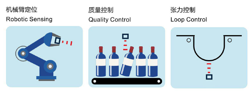 不受顏色和形狀的影響,不受被測目標(biāo)材質(zhì)的限制,在工控自動化場景中得到廣泛的應(yīng)用。下面列舉了一些行業(yè)中的典型應(yīng)用。
